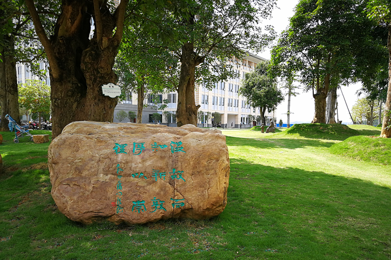 图书馆正门的柱子上,悬挂着二副对联: “晨钟暮鼓睇逝水策你我学子夕惕朝競遒绍往圣;碧瓦明甍迴流光显汉唐宗风春发秋容敷被杏林”;“学府云集拥绿水采四面清风五合毓秀尤闻岐伯传妙道;斯文荟萃依青山纳东方紫气三才钟灵且看炎子振兰翮”。