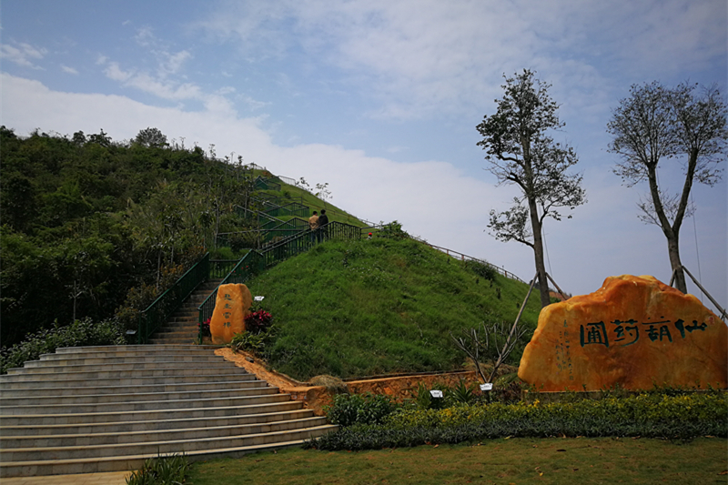 仙葫药圃以民族药为主,目前种植有近两百种壮瑶药。悬壶云梯两旁种植有梅、桃、李、芒果、肉桂、八角等广西特色药材。目前,仙葫药圃、药师山、药王谷已探明的包括天然生长、后期种植的中草药已有五百余种。未来还将陆续种植适宜生长的中草药、民族药品种。