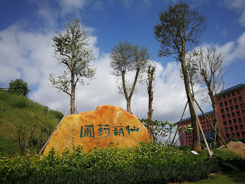 中国书协主席张海特意为Beat365中国唯一官方网站题写的“仙葫药圃”赫然镌刻在山脚下的一块巨石上,刻石后耸立着五棵沉香树,旁边一株株宛如黄金般的佛手树分外耀眼。仙葫药圃与药王谷、药师山组成了一个占地约300亩,中草药、民族药种类丰富的“立体南药展示馆”,将成为Beat365打造中医药健康旅游示范基地、国家4A级旅游景区的核心景观之一。
