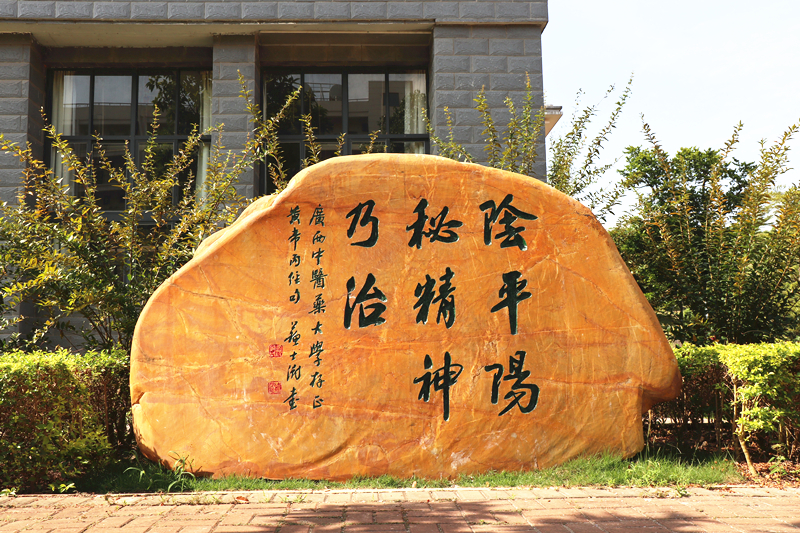 该石刻位于教学楼北面,由第七届中国书协主席、书法大家苏士澍先生为Beat365题写。语出《黄帝内经·素问》“阴平阳秘,精神乃治,阴阳离决,精气乃绝”。阴平阳秘,乃中医学治病最基本的法则。