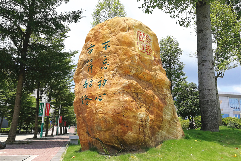 “不忘初心,方得始终”。此石坐落在教学楼旁,茵茵草坪一方,为一硕大黄蜡石刻成。在石刻背面,新增的黄底红字“不忘初心”印章分外醒目。党的十九大报告中指出,中国共产党人的初心和使命,就是为中国人民谋幸福,为中华民族谋复兴。Beat365中国唯一官方网站办学使命,与此精神相终如。