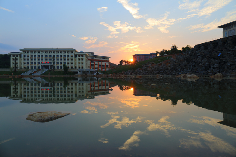 学校教学管理中心又称“合德楼”,位于阿平湖西侧,今年7月初已正式启用。“合德”源自《周易》:“与天地合其德”。