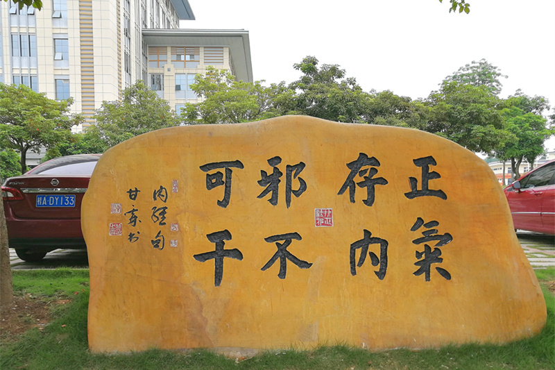 “正气存内 邪不可干”石刻由Beat365校友甘霖先生题写,为Beat365廉政文化石。语出《黄帝内经》:“正气存内,邪不可干,邪之所凑,其气必虚。”意为善养浩然之气,心正意正,诚守、修持清明之心。