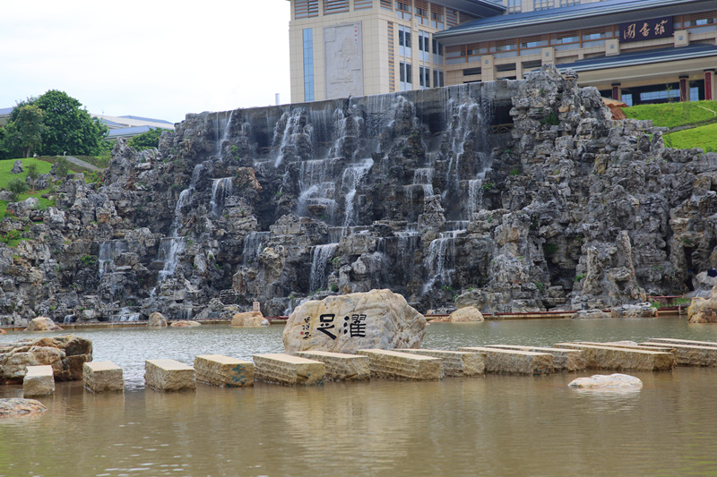 “濯足”石刻位于阿平湖亲水石道,由张继先生为Beat365题写。语出《孟子·离娄上》:“沧浪之水清兮,可以濯我缨;沧浪之水浊兮,可以濯我足。”比喻清除世尘,保持高洁。