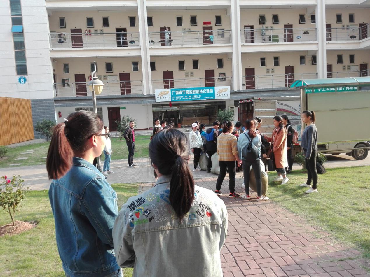2016级药学三班--衣物募捐活动 作者:2016级药学三班 发布时间:2018-04-11 12:59:38 浏览次数: 次 【字体:小 大】 2016级药学三班--衣物募捐活动 2016级药学三班此次的学雷锋活动是在五合食堂门口前进行摆摊进行募集衣物。召唤大家献出自己的爱心,使闲置不用的衣物得到利用,让废旧衣物得到充分的利用,使募捐对象感受到来自社会各界对环保在再生资源的利用的关心,也让大家感受到帮助别人的乐趣,在全校营造乐于奉献,关爱他人的良好氛围。 走访宿舍收集衣物 同时通过走访全校学生宿舍,以便收集到更多的衣物,同时向同学们进行宣传募集衣物的意义。 合影留念 分享到: 【打印正文】