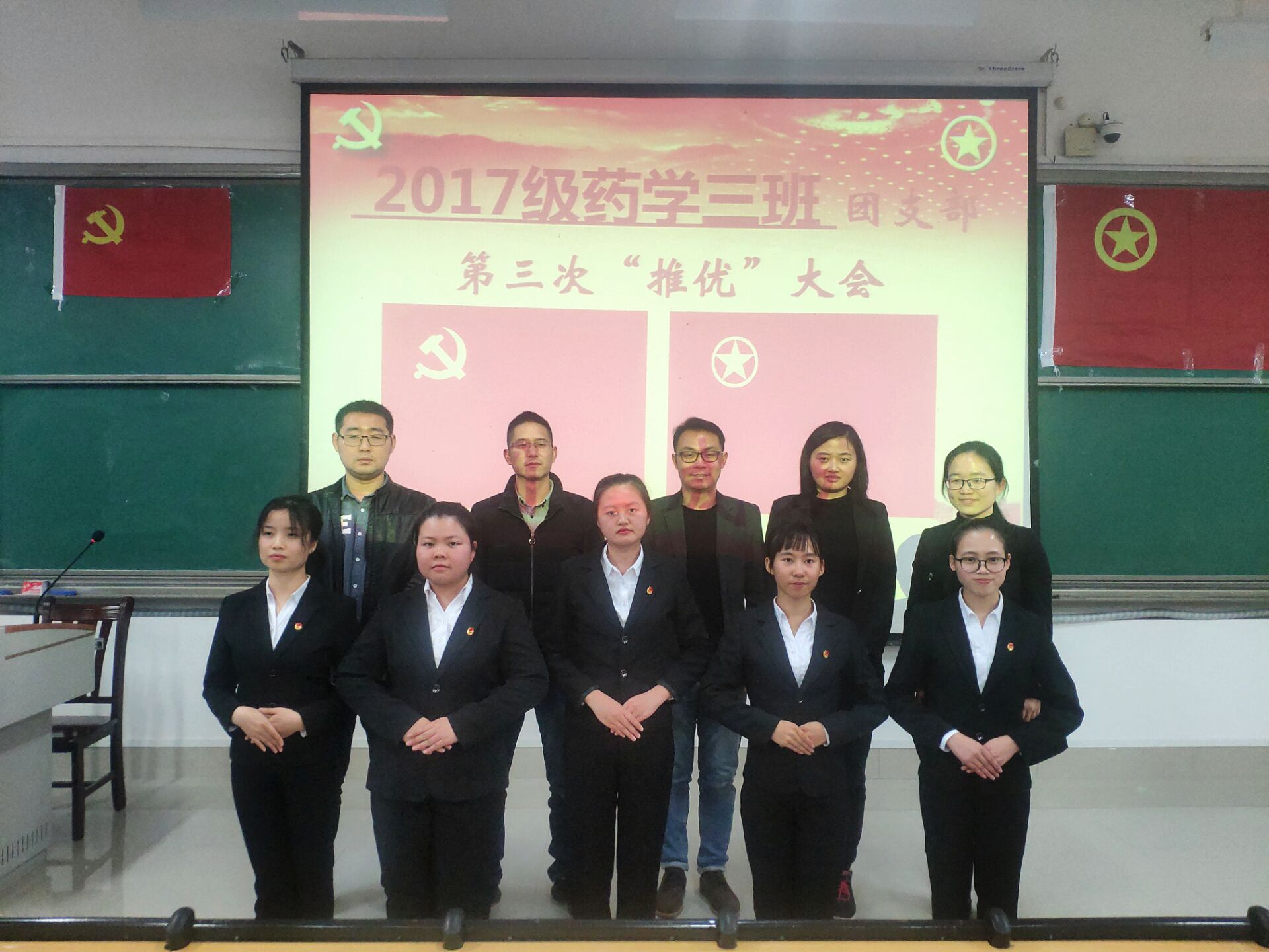 在庄严的党旗和团旗下,2017级药学3班的五位推优对象分别介绍了自己基本情况并陈述了自己的入党动机,向团支部各成员表明了自己入党的决心。团支部成员公平公正地审议五位推优对象,并进行投票表决。最终五位推优对象成功推优。最后,黄鑫老师对本次推优大会表示肯定同时也指出了不足之处,他强调了推优的重要性,并号召同学们积极向中国共产党靠拢。