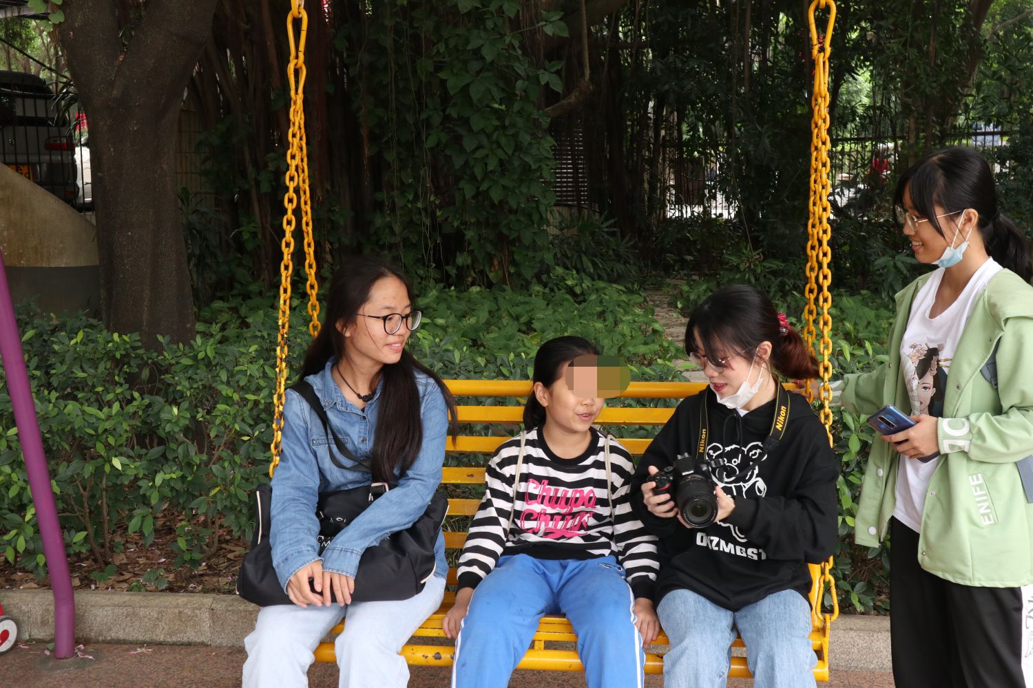志愿者与孩子们来到金茶花公园,游园过程中志愿者带领孩子们感受大自然的声音,让孩子们对世界更向往。在交流中了解孩子们的日常生活和身体状况,通过丢手绢训练孩子们对声音的分辨能力,强化他们对声音的敏感程度;双人羽毛球协作运动,使他们有更多的爱好,更好地和他人交流沟通,健康快乐地成长,将温暖传递给每个人。他们虽身患残疾,但不失童真,在与志愿者互动过程中,他们表情灵动、活泼可爱,温暖人心。