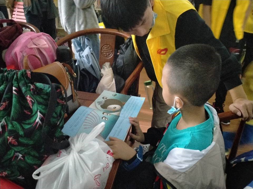志愿者和小朋友在阅读