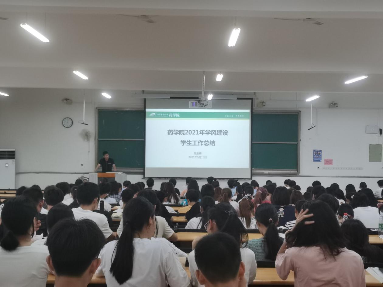 5月16日晚,药学院2020级药学、食品专业在仙葫校区教学楼1-303教室举行学风建设主题会议。辅导员吴玉峰老师主持会议并讲话,2020级药学、食品专业全体同学参加本次会议。