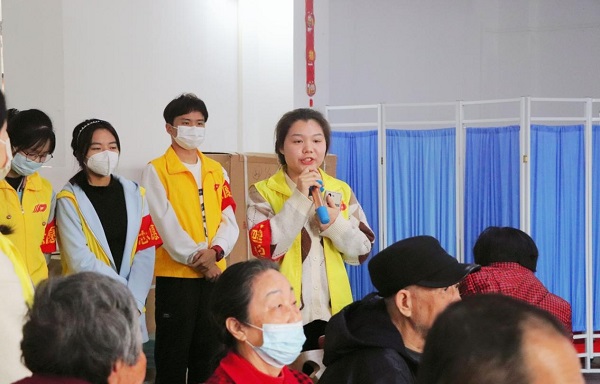 志愿者向老人讲解健康知识