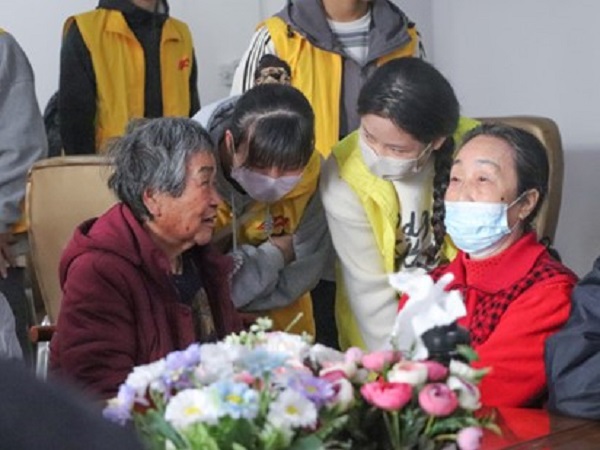志愿者与老人亲切交谈