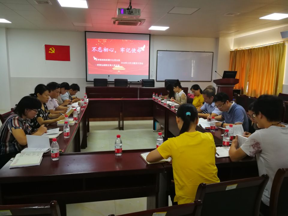 为进一步推进“不忘初心、牢记使命”主题教育的开展,2019年10月13日上午,药学院炮制药事中化党支部与一附院仙葫院区第六党支部在仙葫校区达道楼B421会议室开展了“不忘初心、牢记使命”主题党支部共建活动。药学院党委书记蒋林作为炮制药事中化党支部的成员参会。