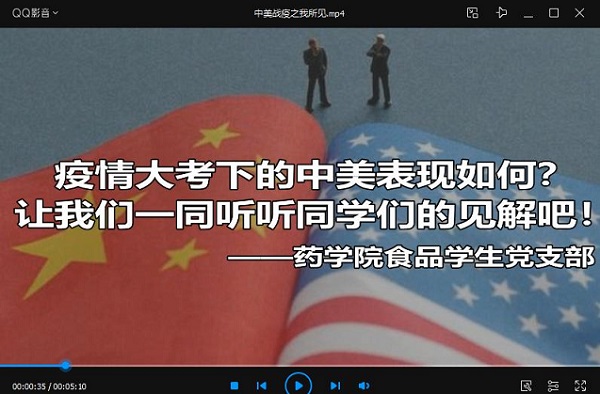 药学院食品学生党支部于5月16日-25日开展了以“中美战疫之我所见”为主题的线上主题党日活动。