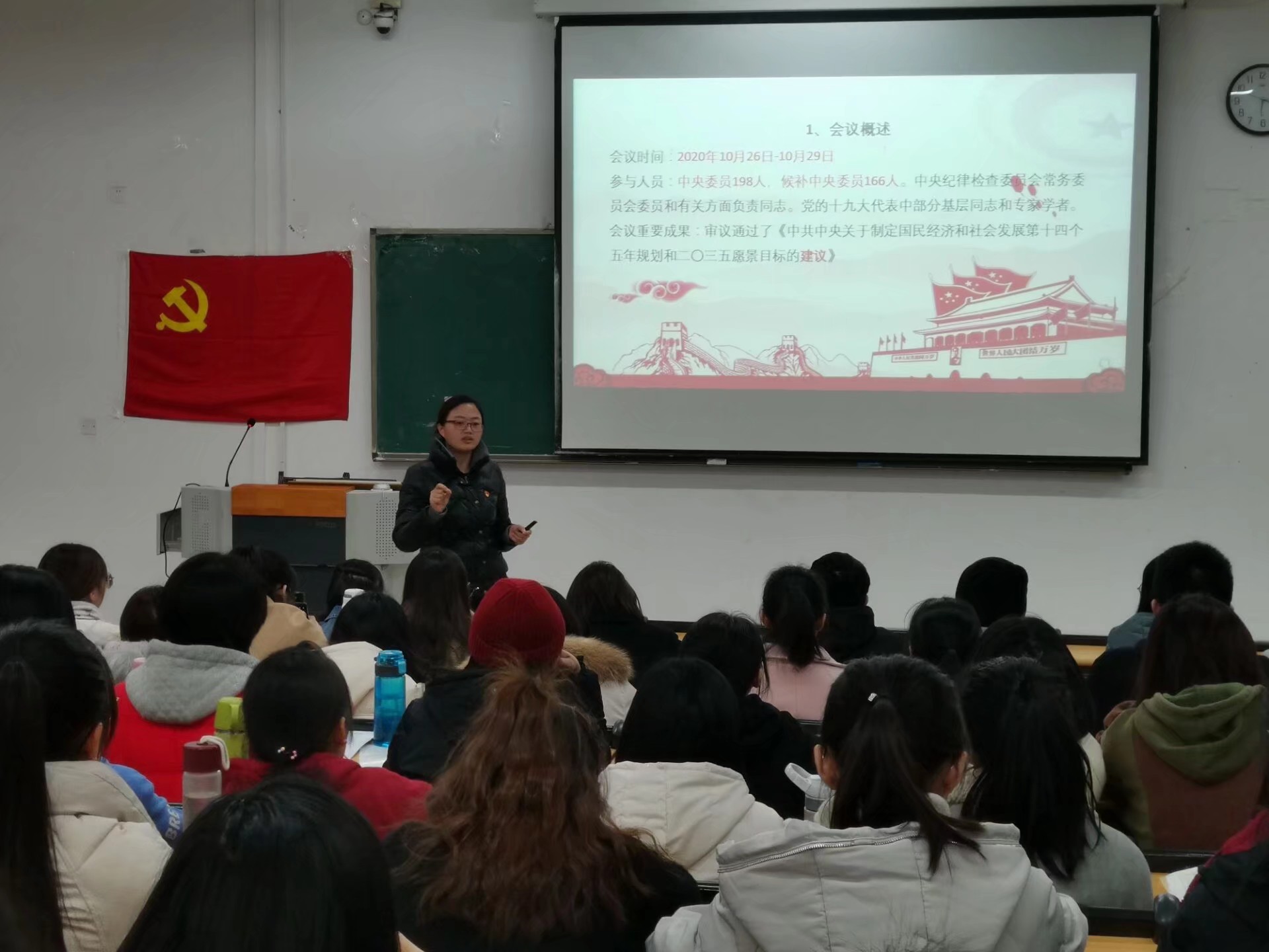 最后,副书记苏嘉福引用习近平总书记在北京大学师生座谈会上的话给我们讲述诚信的重要作用,鼓励大家重视接下来的期末考试,最后对在12月主题党员活动中获奖的人员进行了表彰。
