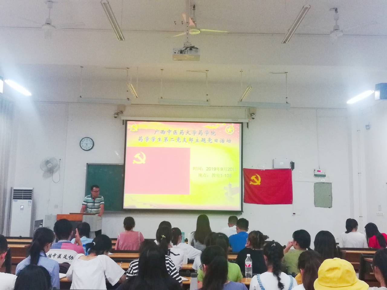 药学院药学学生第二党支部于2019年9月20日星期五下午17:30在1-108开展“学习黄文秀同志先进事迹党日主题活动”,大会由支部书记黄鑫主持,此次支部13名正式党员、12名预备党员参会,同时入党积极分子也参会。