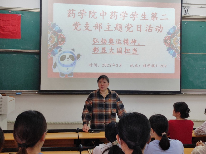 药学院中药学学生第二党支部开展“弘扬奥运精神,彰显大国担当”主题党日活动