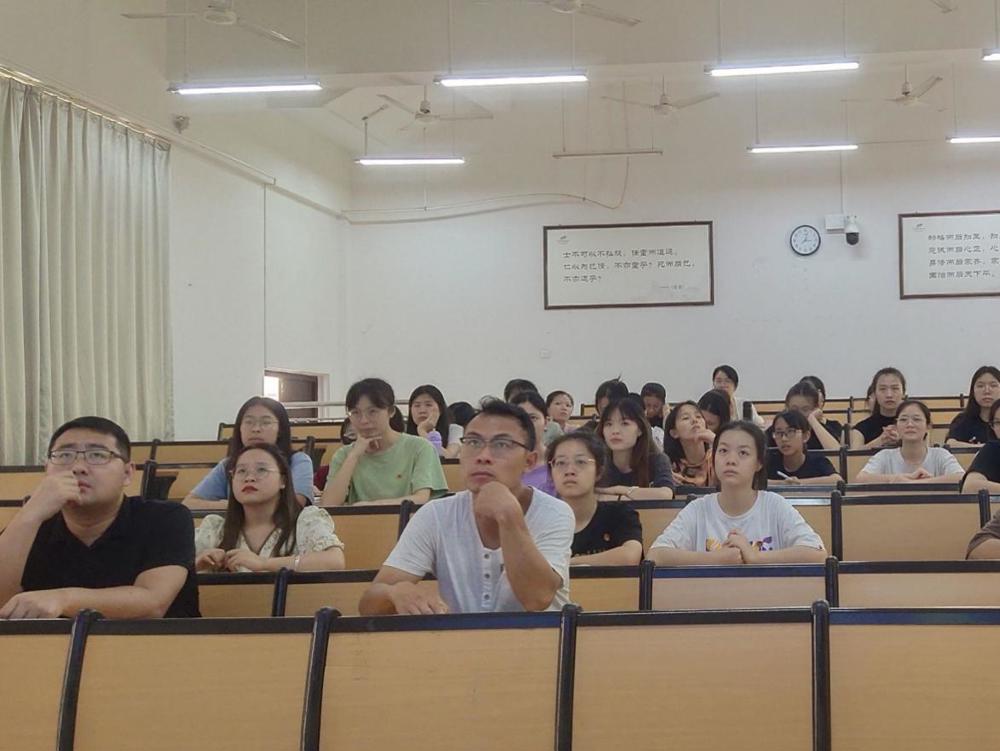 会议中,石小秀、周泽阳和方馨敏同志分别从考研科目、考研复习方法及资料、考研时间等方面详细地介绍了自己的考研经验,并为同学们推荐了值得收藏的考研公众号、网络课程。他们指出,考研不仅需要充分的知识储备,还应有良好的应试心态;做好日常计划并坚持学习、自律自强,如此在考试的时候便可从容面对。