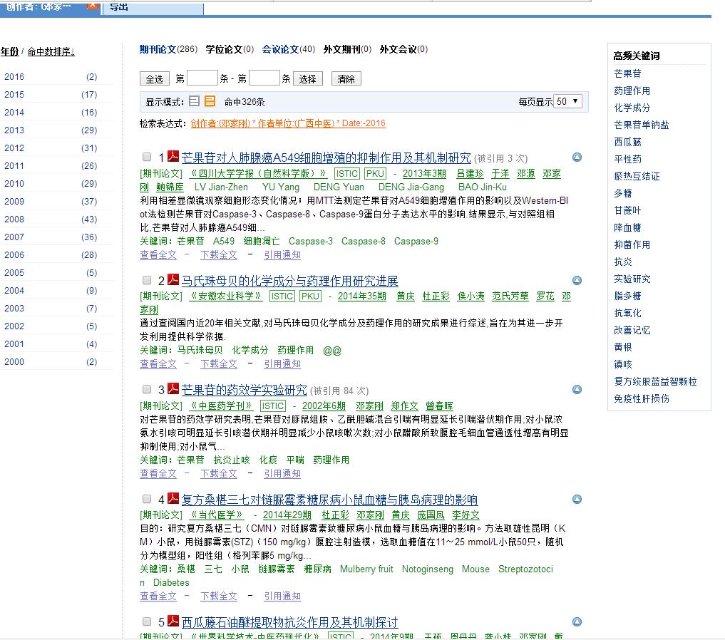 (2)进入检索结果界面:搜索到有关Beat365邓家刚教授所发表的文献326条.