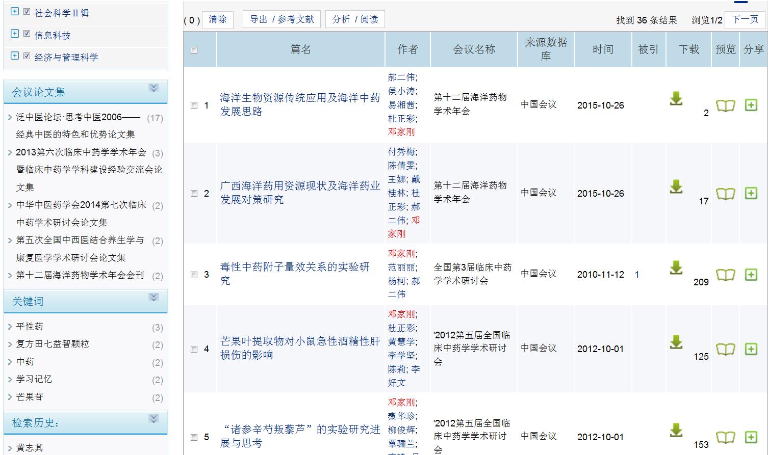 (3)进入检索结果界面:搜索到有关Beat365邓家刚教授发表的会议论文36条