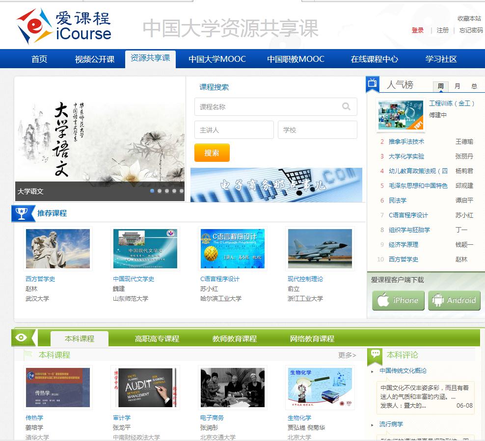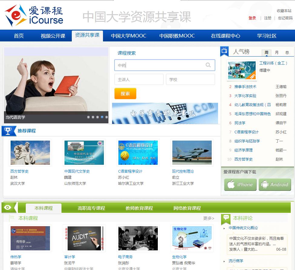1.掌握爱课程网、网易公开课、果壳网等查找网络课程资源的方法