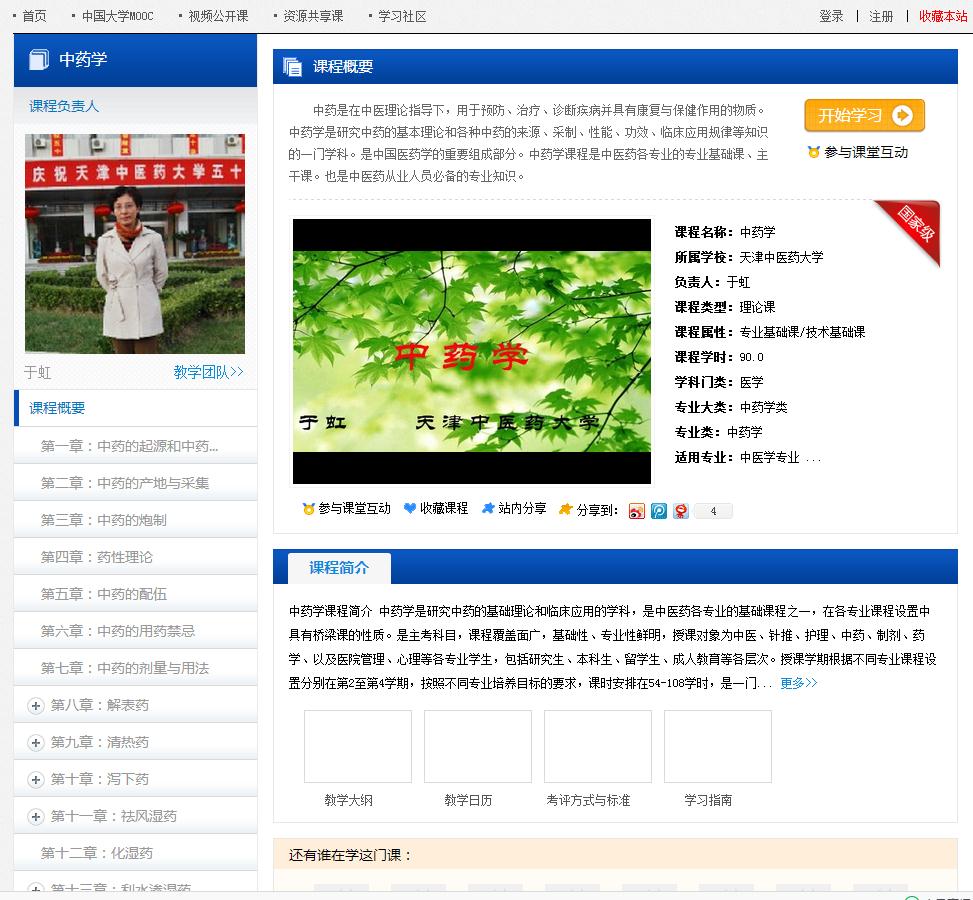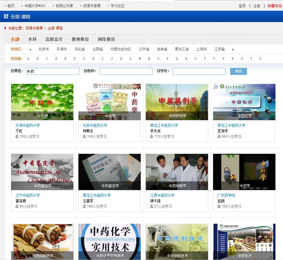 (3)进入检索结果界面:搜索到有关中药的共享课程。