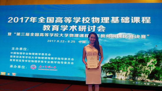 莫嘉雯老师喜获“2017年全国高等学校基础物理课程青年教师讲课比赛”全国总决赛二等奖