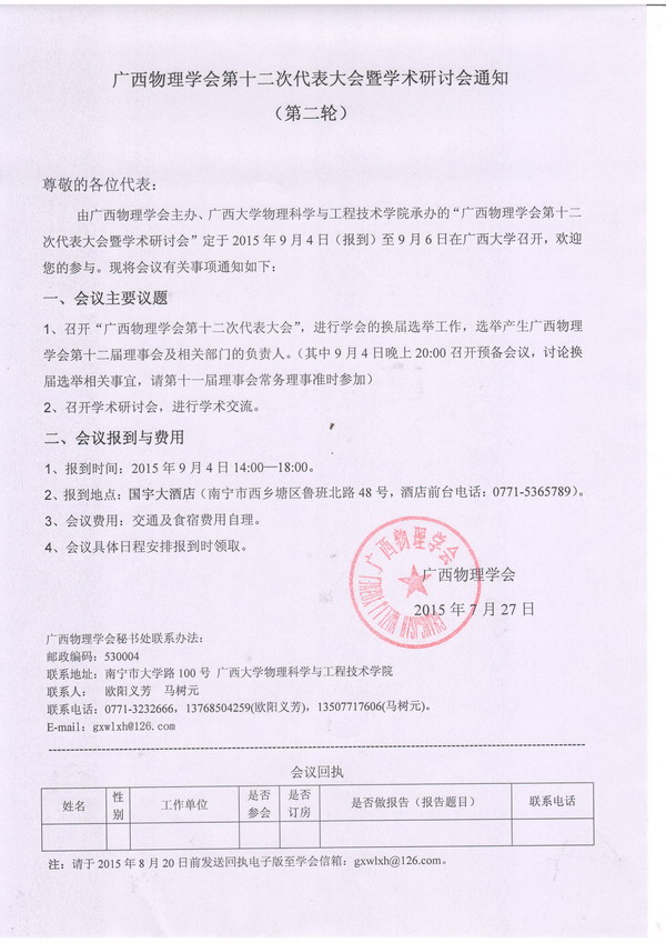 广西物理学会第十二次代表大会暨学术研讨会