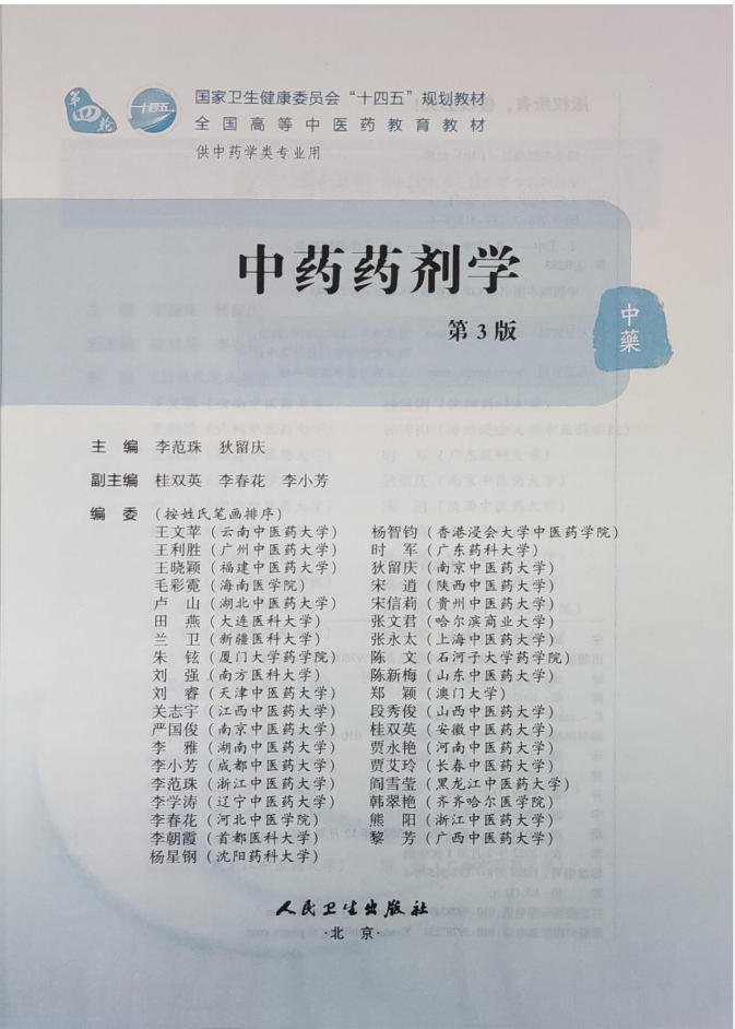 药剂教研室2022年参编教材情况-黎芳参编《中药药剂学》十四五规划教材
