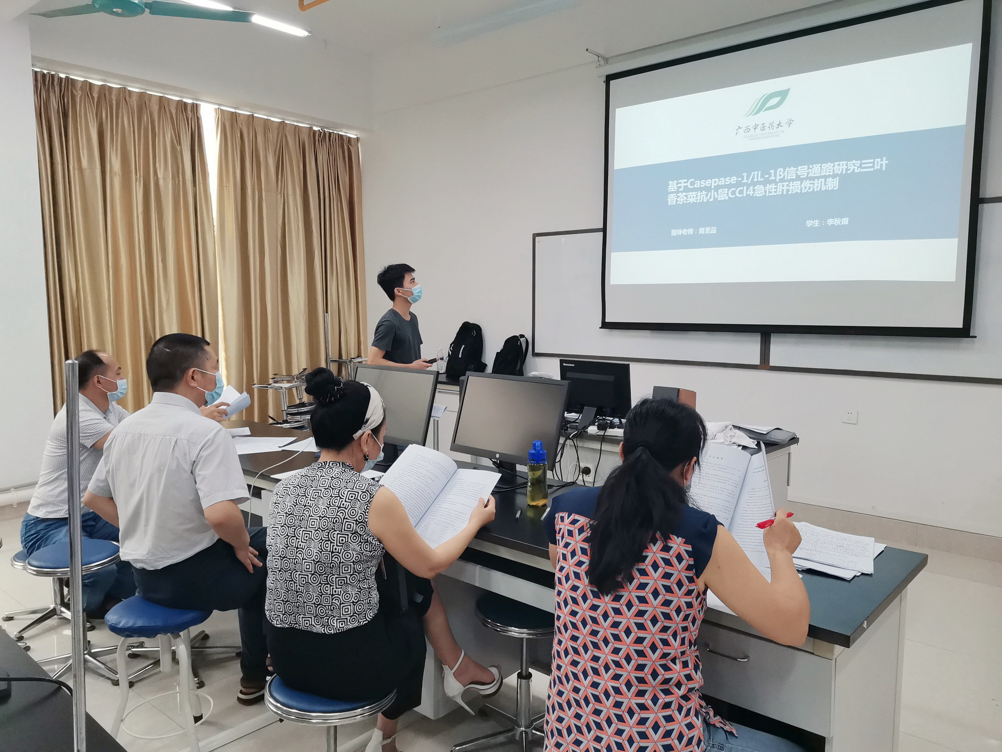 6月9日下午,Beat365中国唯一官方网站药学院药理学教研室在仙葫校区中医药壮瑶医药教学实验中心二楼药理学实验室举行了2020届本科毕业生第一批毕业论文答辩会。药学院2020届中药学、药学、食品科学与工程专业近30名本科学生参加了答辩会。为保证了答辩的公正性,答辩会采取学生与带教导师相回避的分组方式,分为三组同时进行。杨秀芬教授、夏星教授、杨柯教授分别担任答辩组组长。答辩过程中,答辩学生准备5-10分钟的PPT,对自己论文的选题目的、理论框架、研究问题的方法、研究结果及其实际意义作了全面而精炼的阐述。各组答辩老师以认真、严谨的态度,考察了毕业生掌握专业知识的熟练程度,详细指出论文中存在的不足和问题,提出改进意见,保证学位论文质量。