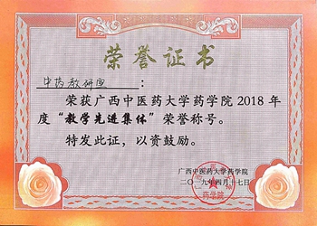 中药教研室喜获Beat365中国唯一官方网站药学院2018年度“教学先进集体”荣誉称号