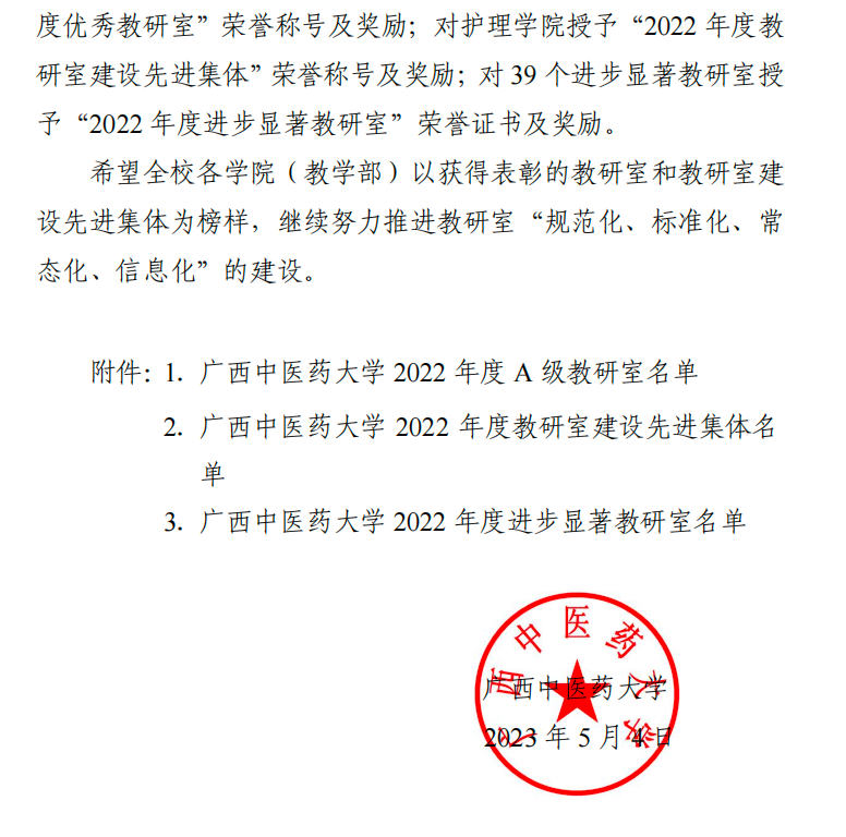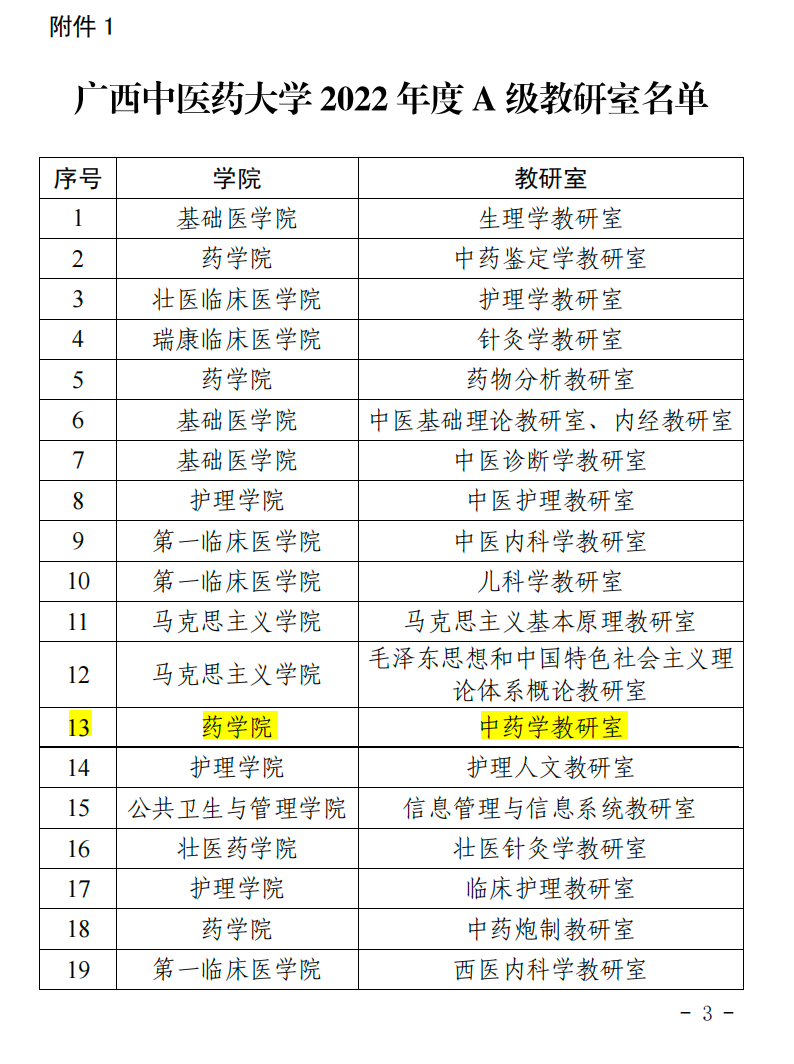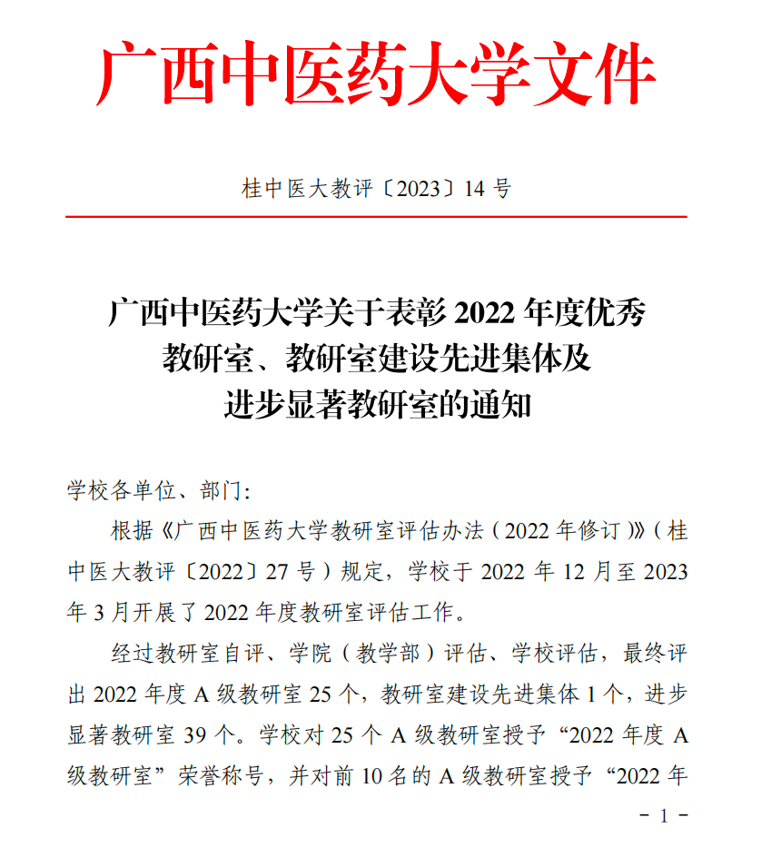 中药教研室荣获2022年度A级教研室