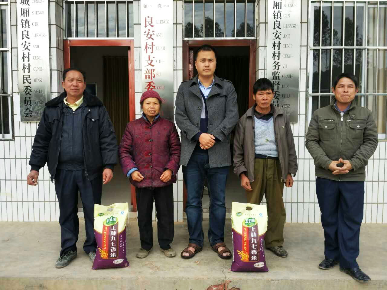 2016年1月24日,药学院党委副书记、分工会主席李豫萍在药学院工会委员李耀华老师、中药鉴定教研室主任田慧老师、药学院分团委书记王金兰老师和药学院学生党支部管海钦老师的陪同下,亲赴南宁市隆安县城厢镇良安村慰问精准扶贫识别工作队员——来自药学院的杜沛霖老师。