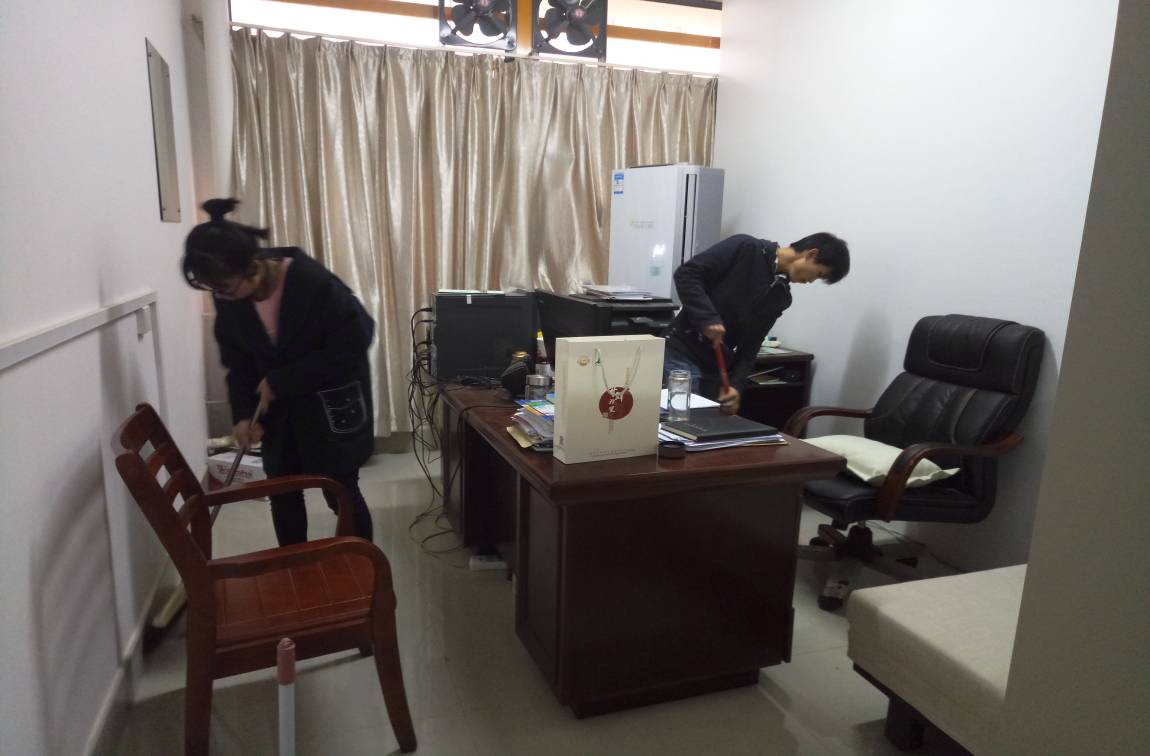 药学院2015级中药1班同学帮教研室老师打扫办公室