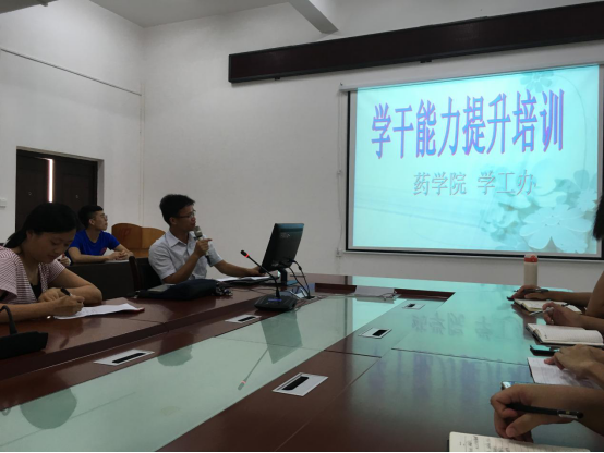 为了提高学生干部的各方面能力,更好的开展学生工作,5月29日下午,药学院学工办在达道楼A405会议室召开学生干部能力提升专题培训,由学工办凌勇威老师主讲。参加培训的有15级、16级、17级三个年级的年级委、团支书、班长以及学办秘书。