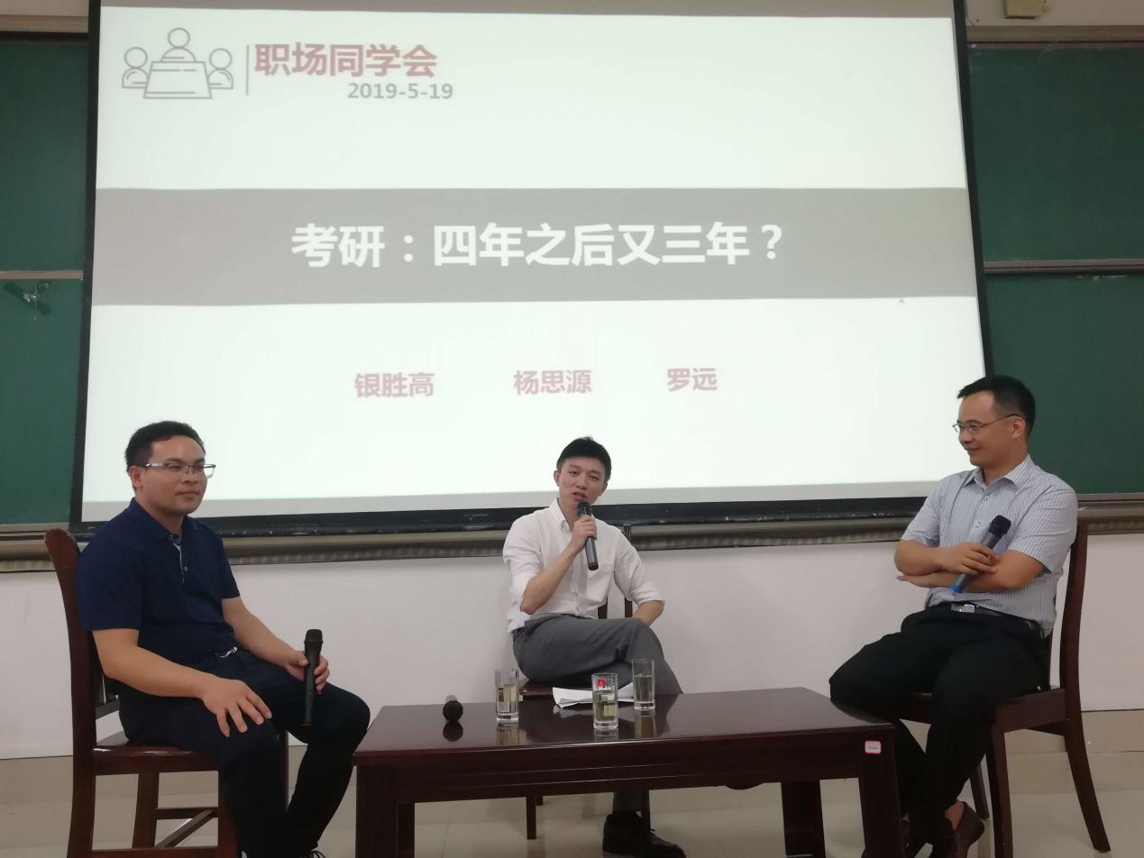 5月19日下午,药学院主题班会“考研职场同学会” 在仙葫校区楼1-307教室顺利开展。2017级药学2班主任杨思源、辅导员刘佳及银胜高、罗远等4位老师担任活动嘉宾,药学院100余名同学参与现场分享交流。活动安排充实紧凑,会场师生交流欢快愉悦。
