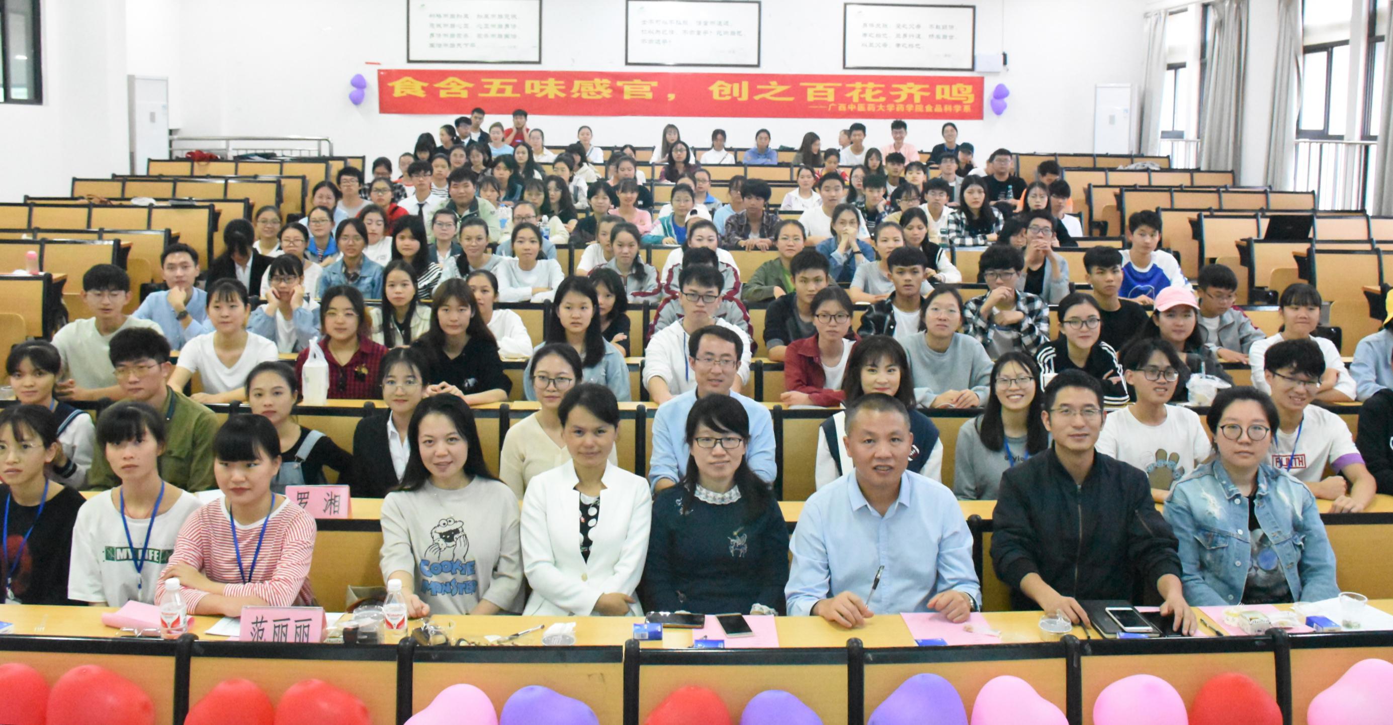 11月12日下午,药学院第十届“药之声”专业文化节之“五味感官体验”创意食品制作大赛决赛在仙葫校区教学楼1—205教室热力开展。药学院食品团队专家谭强、范丽丽、罗湘、毛彦、谢文佩、孙一铭及辅导员吴玉峰等近10名教师莅临现场参与评审。活动场面热烈,同学情绪高涨,氛围欢快和谐,吸引了300余名药学院各年级同学流连现场为选手们呐喊助威,观摩竞赛。