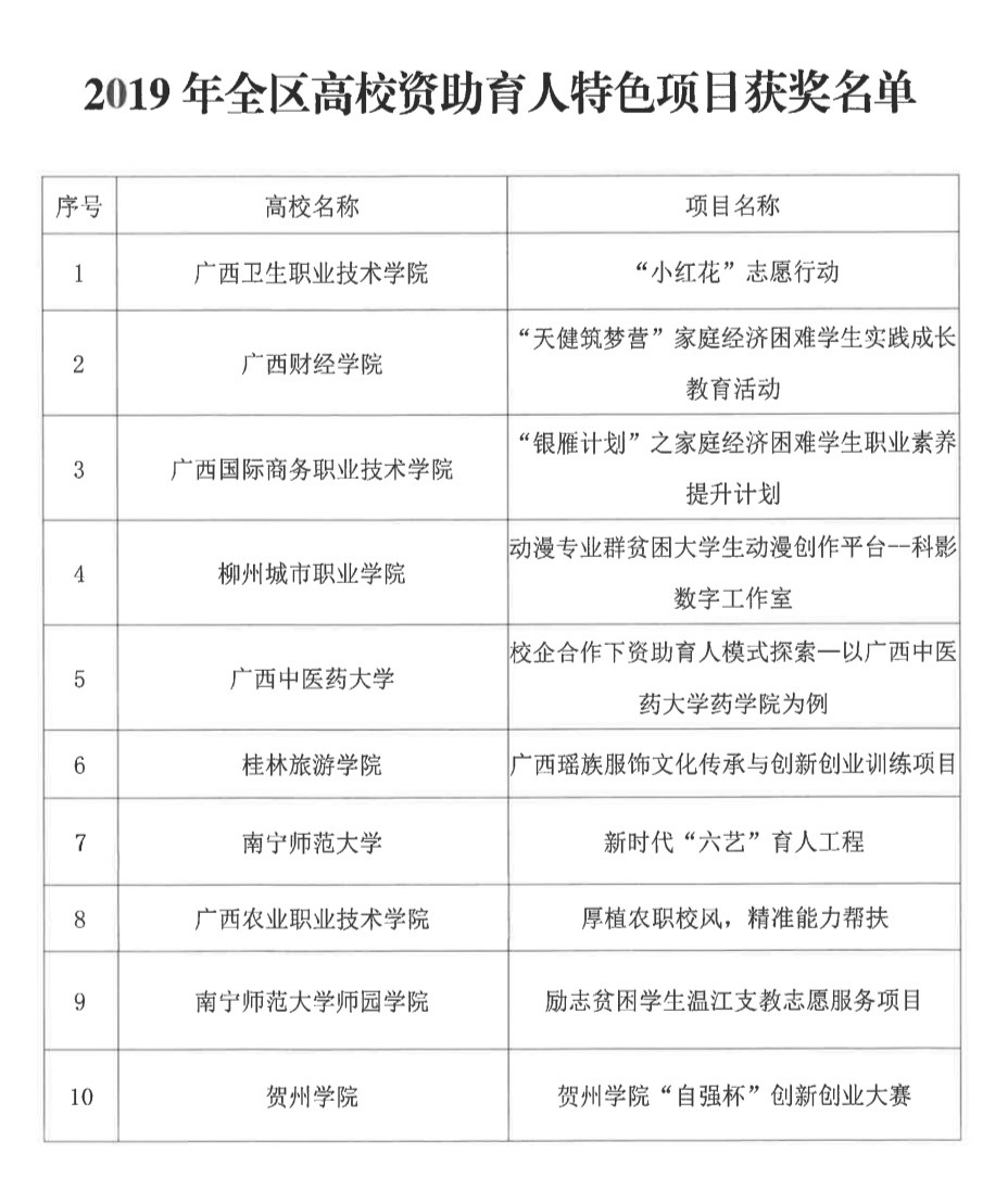【喜讯】药学院荣获全区高校资助育人特色项目 来源:药学院 作者:王宗耀 发布时间:2019-12-30 17:32:59 浏览次数: 次 【字体:小 大】 近日,2019年全区资助育人项目和工作典型案例评选获奖名单已由广西壮族自治区教育厅公布,我院申报项目“校企合作下资助育人模式探索——以Beat365中国唯一官方网站药学院为例”荣获2019年全区高校资助育人特色项目的称号。 谨此祝贺我院今年在资助育人方面取得的成绩,希望全体项目人员认真总结申报经验,推动我院“三全育人”工作再上新台阶。 分享到: 【打印正文】