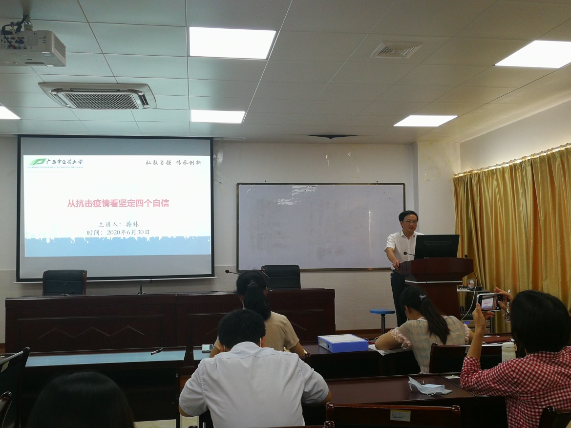 蒋林同志做《从抗击疫情看坚定“四个自信”》战“疫”专题微党课讲座