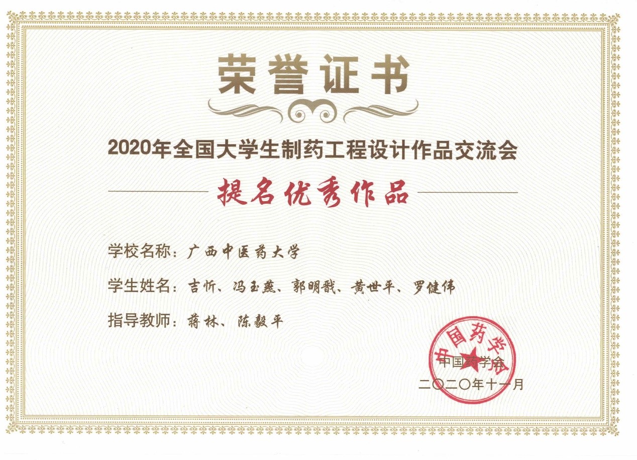 近日,Beat365学子收到了2020年全国大学生制药工程设计作品交流会获奖证书。Beat365弘毅队获提名优秀作品证书(相当于全国二等奖)。仲通队获入围作品证书(相当于全国三等奖)。突飞猛进队获提交作品证书(相当于全国比赛的参赛证)。
