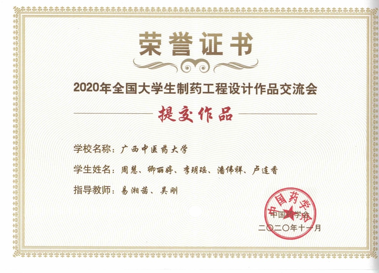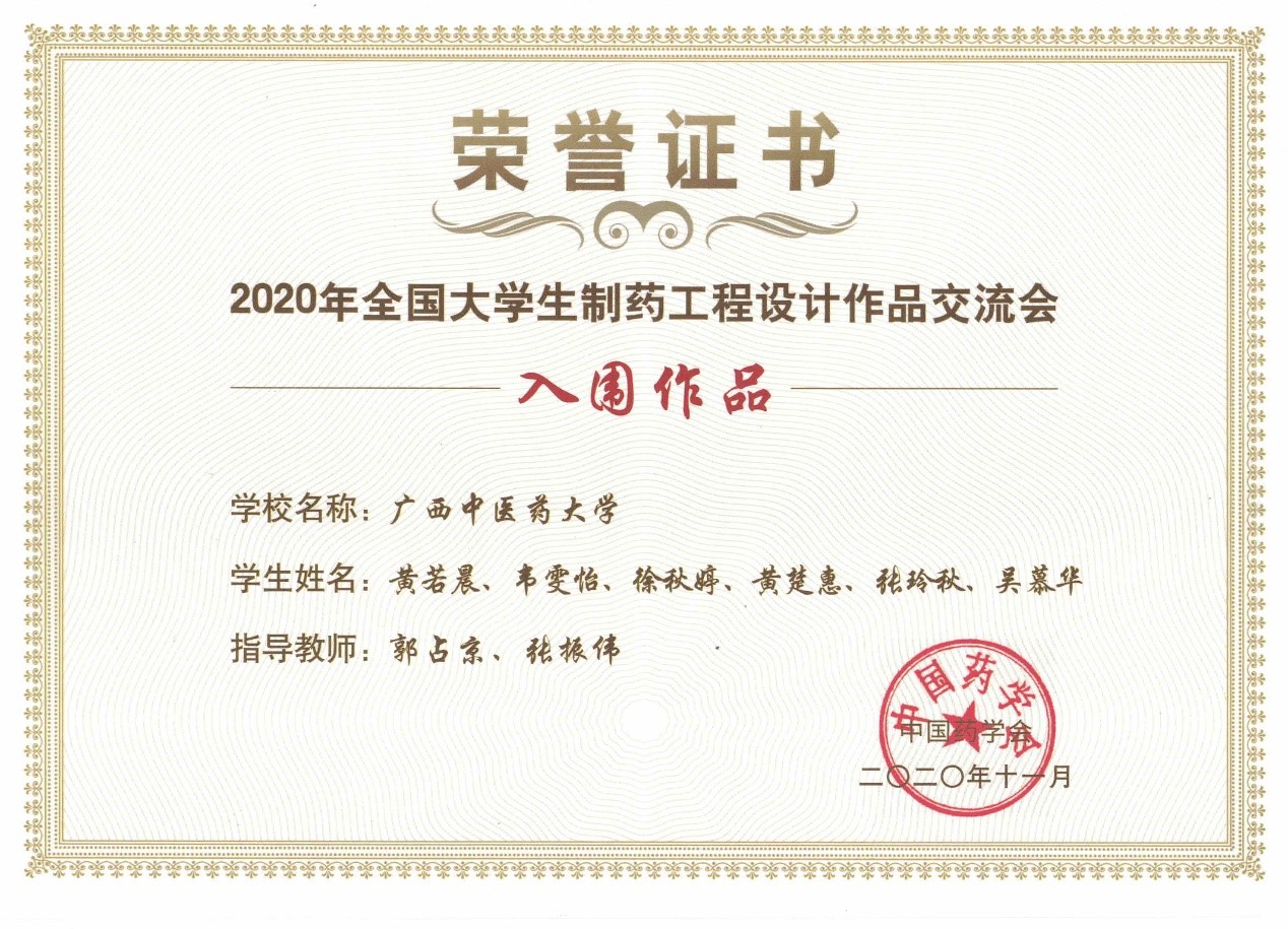 据悉,全国大学生制药工程设计作品交流会是一项全国制药工程专业的盛会,迄今为止已经举办了10届,在全国各大高校及社会上具有很大的影响力。我院学子首次获得获奖证书,这将有助于进一步凸显我院制药工程专业的工科特色,提升我院制药工程专业的知名度。