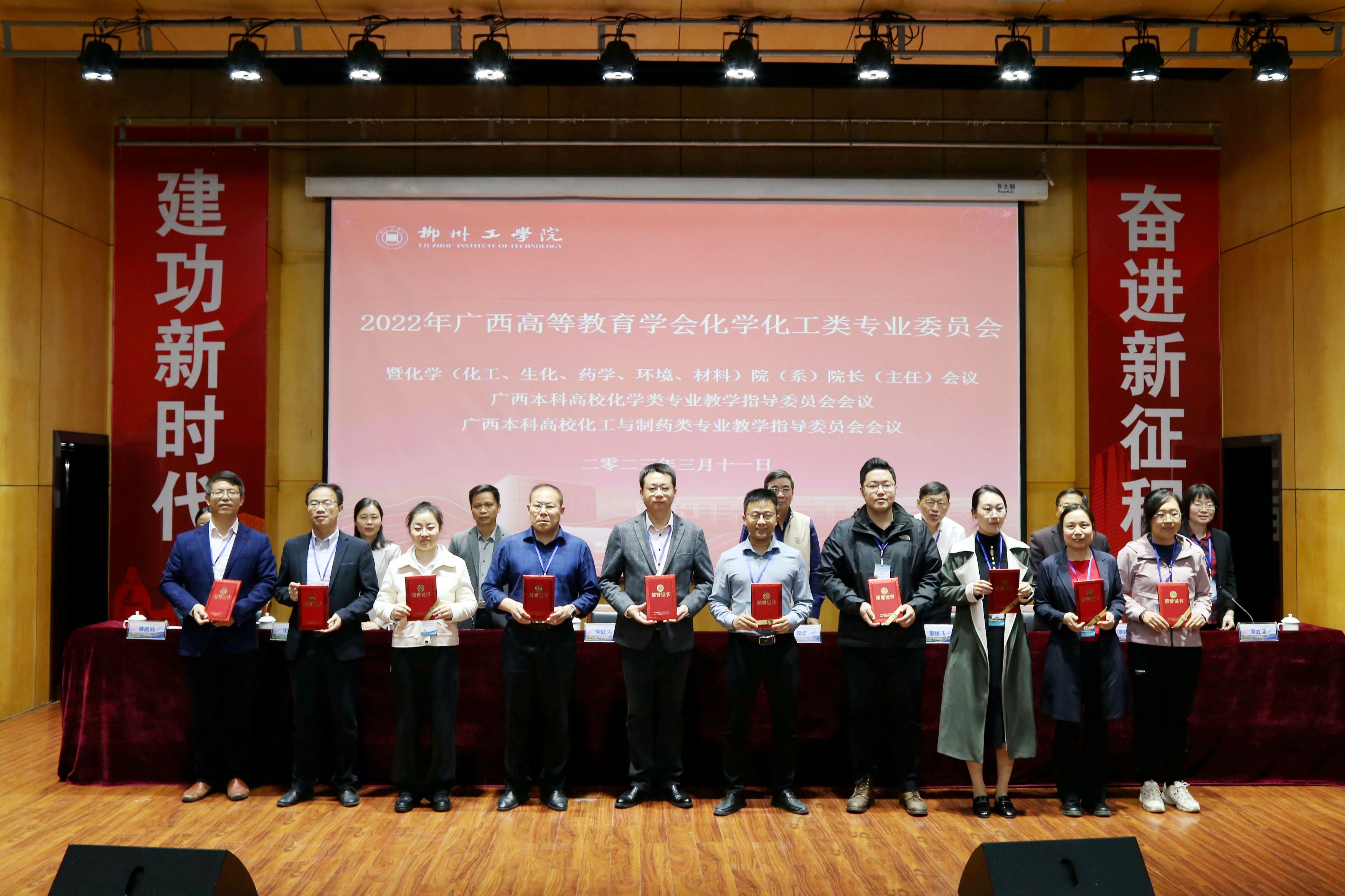 参会代表为Beat365领取了优秀组织奖的荣誉证书与13项学生获奖证书,其中广西高校第二十三届化学化工类学术创新成果竞赛中获得一等奖1项,二等奖4项,三等奖4项,第十一届广西大学生化学实验技能竞赛中获二等奖1项,三等奖3项。