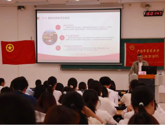 韦维作题为《习近平新时代中国特色社会主义思想概览》的报告,以国际形势与时事热点为切入点,围绕习近平新时代中国特色社会主义思想的形成脉络、历史定位、核心内涵、实践要求等内容展开授课,勉励学员们要端正思想、奋勇进取,以创新精神践行青年担当,成长为服务人民、奉献价值的新时代青年;同时寄语学员明确个人发展方向,做好成长规划,以目标引领行动,在实践中实现进步与成长。