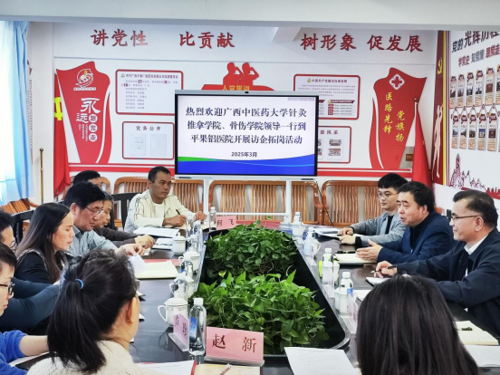 3月20日,针灸推拿学院联合骨伤学院共同前往百色平果铝医院开展“访企拓岗促就业”专项行动,针灸推拿学院党委书记韦维、骨伤学院党委书记蒋闽义,针灸推拿学院学办主任姚嘉及骨伤学院辅导员温健参加活动。