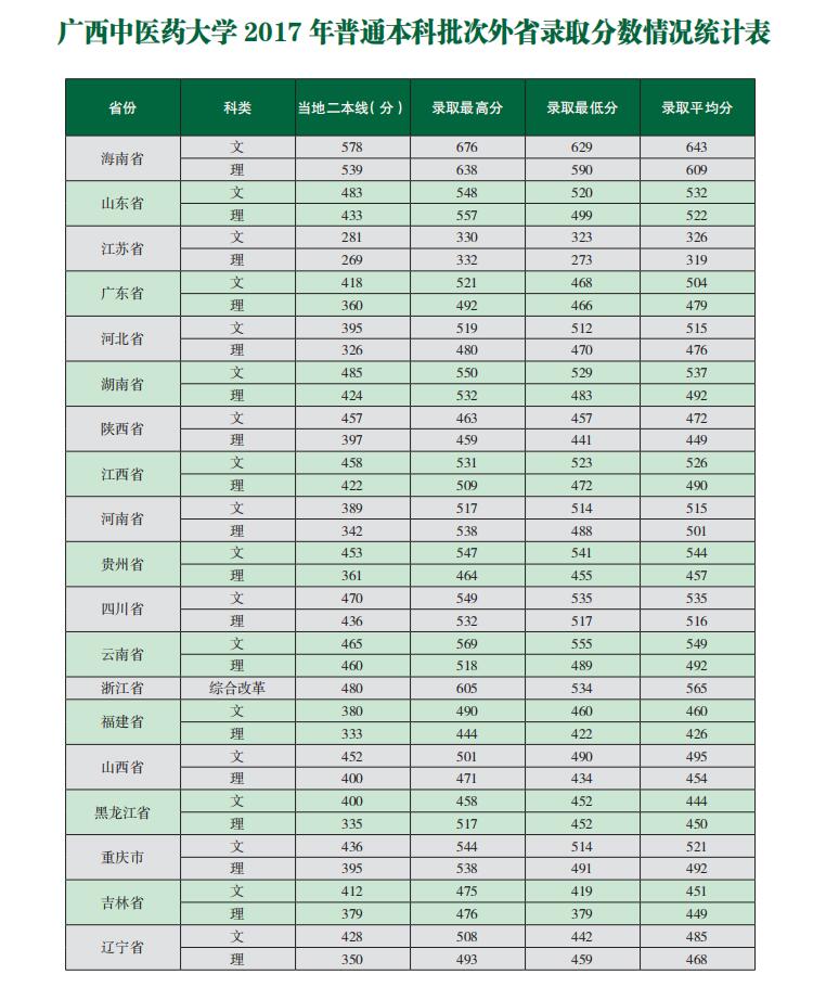 Beat365中国唯一官方网站2017年普通本科批次外省录取分数情况统计表