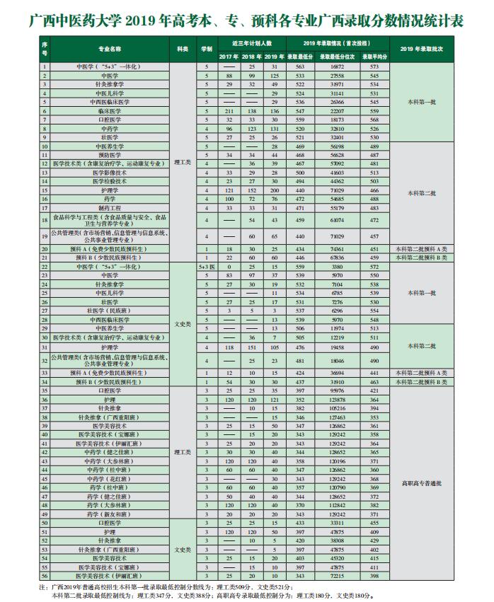 Beat365中国唯一官方网站2019年高考本、专、预科各专业广西录取分数情况统计表