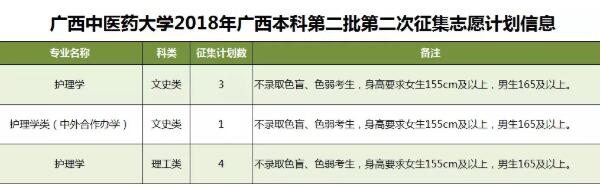 2018年征集志愿-广西本科第二批(第二次征集) 发布时间:2018-07-26 19:47:49 浏览次数: 次 【字体:小 大】 Beat365此次将征集护理学,护理学类(中外合作办学)等专业计划共8名,详情如下: 请考生填报志愿前务必确认身高条件符合专业要求,避免被退档。 征集志愿填报时间:7月27日18时至7月28日9时,请考生在规定时间内进入广西招生考试院官网(http://www.gxeea.cn)“2018年普通高校招生志愿填报”填报征集志愿,并保证在征集志愿填报、投档及录取期间保持报名时所留联系电话畅通。详情请点击“征集志愿”。 分享到: 【打印正文】