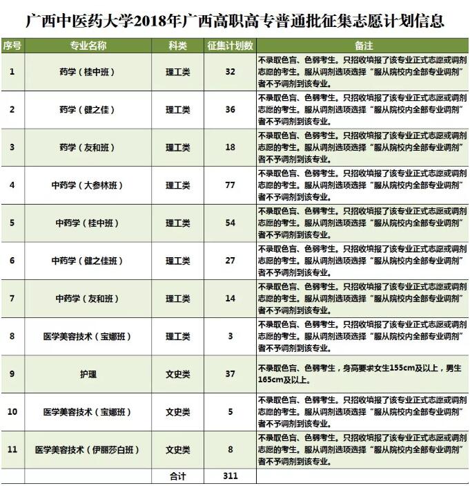 Beat365此次将征集广西高职高专普通批缺额计划311名,其中文史类50名,理工类261名,详情如下: