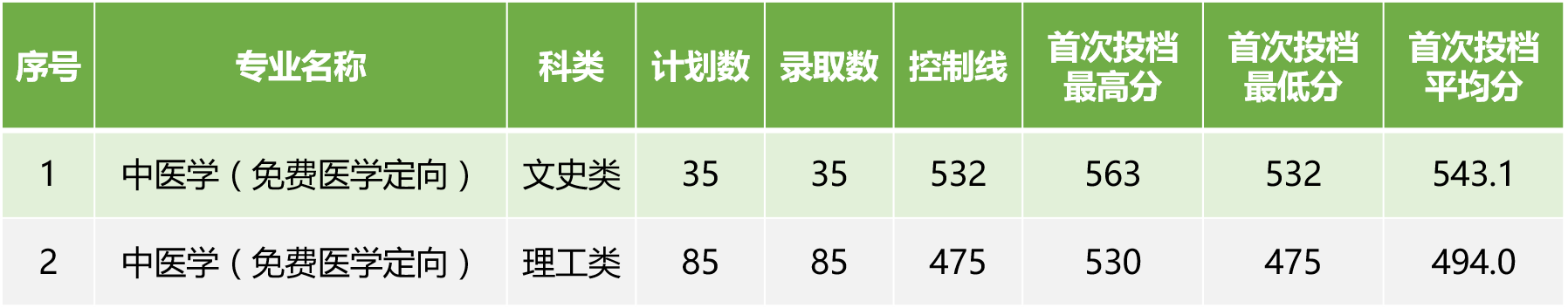 2022年录取进展-广西本科提前批 发布时间:2022-07-12 19:58:19 浏览次数: 次 【字体:小 大】 Beat3652022年在广西本科提前批共录取中医学(免费医学定向)考生120名,其中,文史类35名,理工类85名。录取情况如下: 录取结果以广西招生考试院公布为准,请被录取考生保持报名时所留联系电话畅通以查收录取通知书。 分享到: 【打印正文】