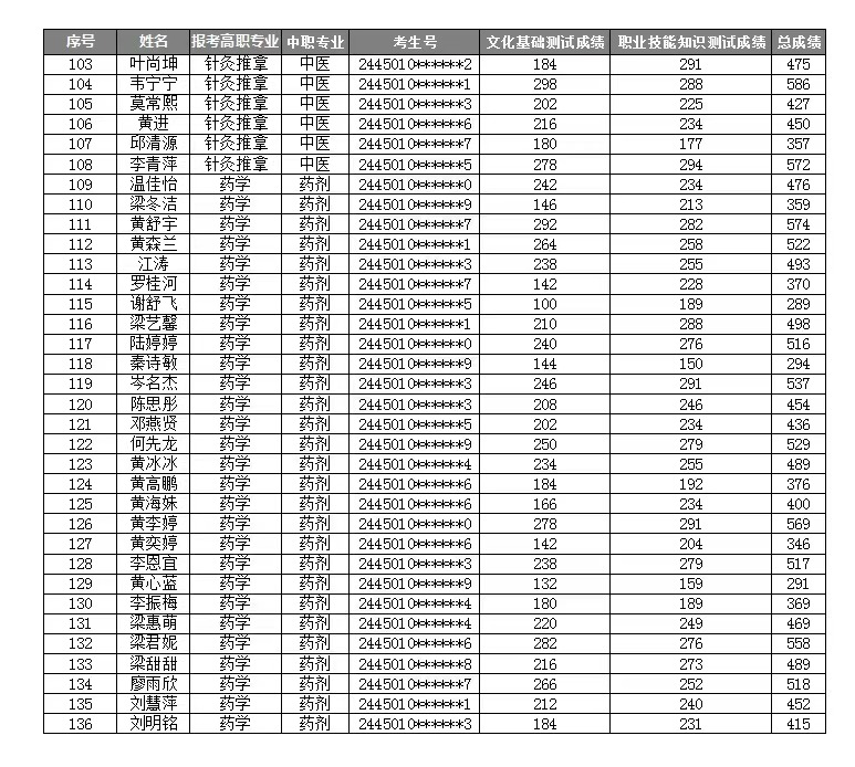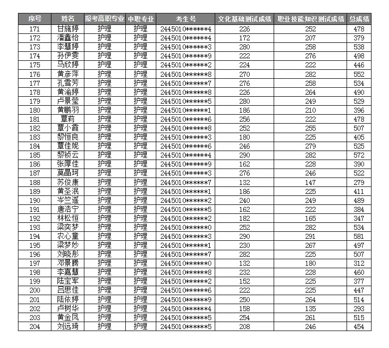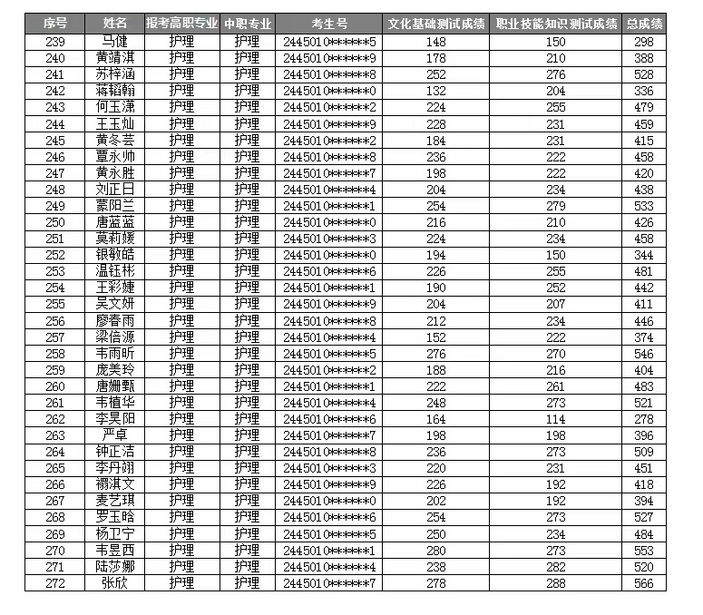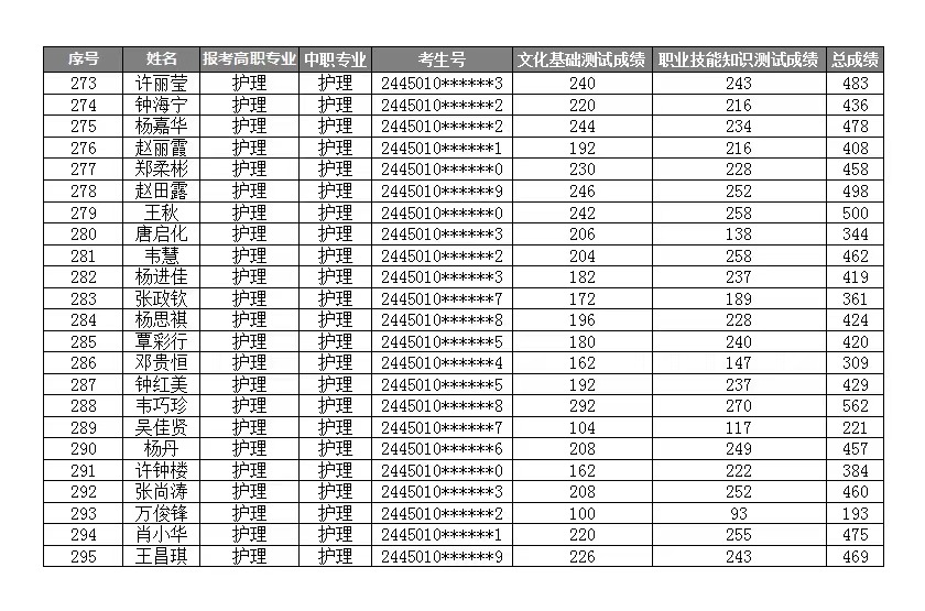 Beat365中国唯一官方网站2024年高职对口中职(“2+3”直升)自主招生考试成绩表