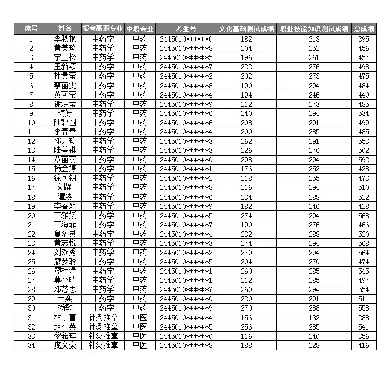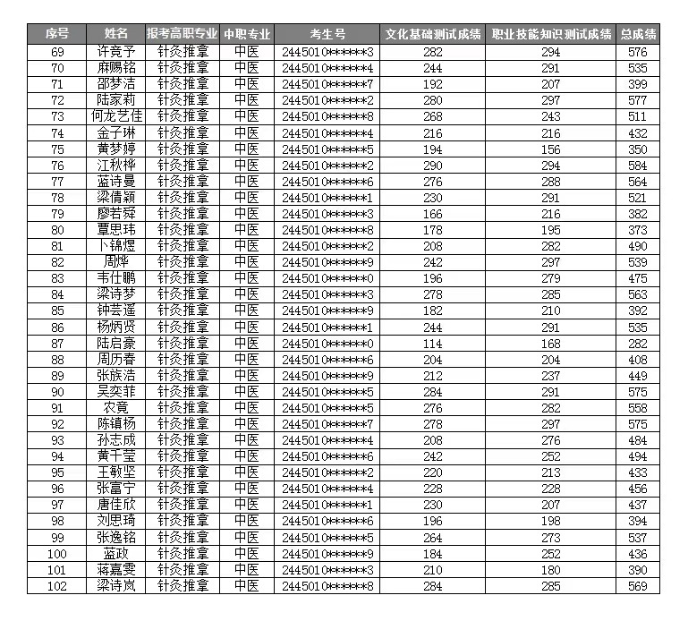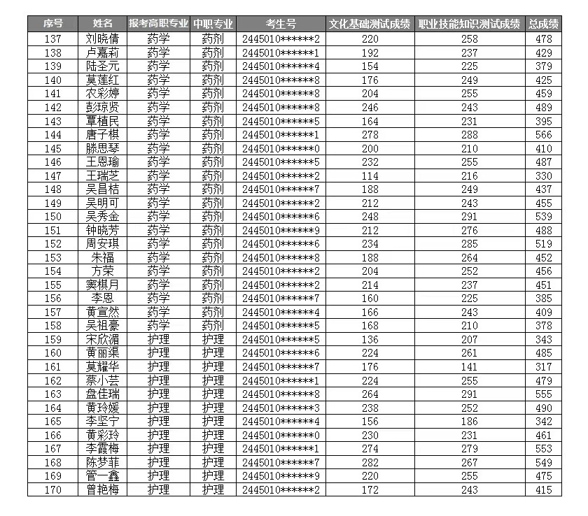 附件:Beat365中国唯一官方网站2024年高职对口中职(“2+3”直升)自主招生考试成绩表